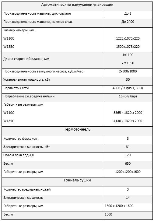 В зависимости от потребностей клиента и технического задания, в состав линии могут входить и другие модели машин — с увеличенным или уменьшенным размером вакуумной камеры, количеством и длиной сварочных планок, производительности и т.д.
