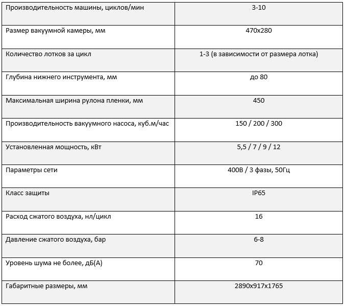 • Выбор вакуумного насоса под производительность и особенности продукта; Дополнительное оборудование – аппликаторы этикеток, принтеры-маркираторы для нанесения переменной информации (дата изготовления, срок годности), сепаратор жидкости для защиты вакуумного насоса при работе с жидкими продуктами, газовый ресивер, тележка для снятия матриц запайки и т. п.;