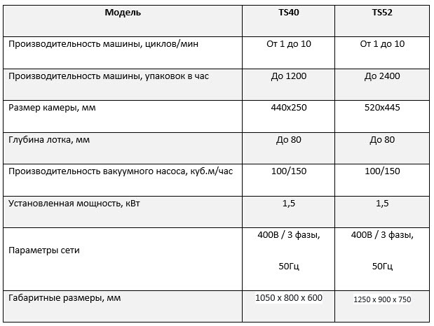 Оператор загружает лотки с продуктом в установочные места рабочего стола, затем активирует рабочий цикл, во время которого рабочий стол заходит под вакуумную камеру, в которой происходят вакуумирование, подача газомодифицированной среды и запайка. По их завершению рабочий стол с лотками выходит обратно. Оператор снимает готовый продукт, помещает новые заготовки и цикл повторяется.