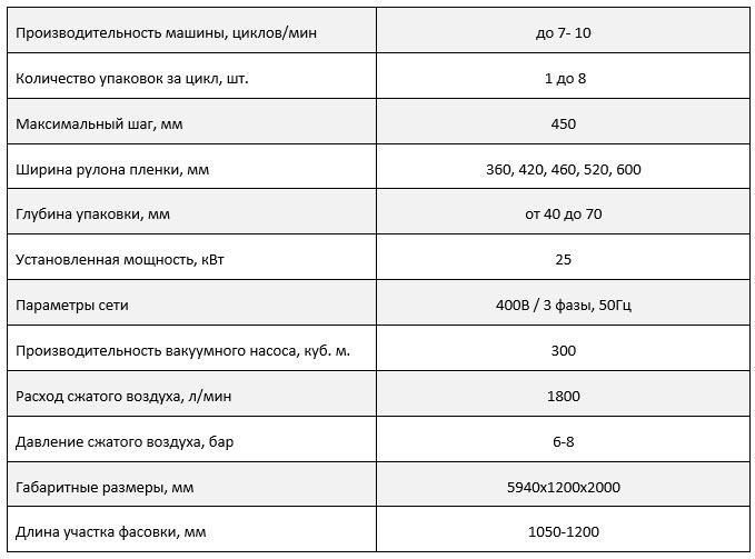 • Длина участка фасовки продукта согласно заданию;