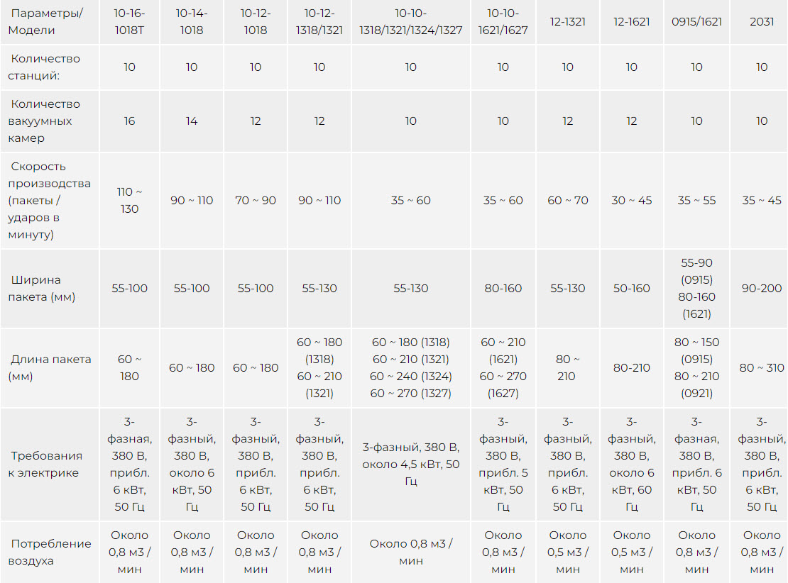 Инновационные роторные вакуумные упаковочные машины для М-образного пакета (пакет с боковой ластовицей) оснащены верхним и нижним открывающими устройствами для открывания пакетов с боковой ластовицей. В промышленных вакуумных упаковочных машинах данного типа используются надежные вакуумные насосы Busch и пневматические клапаны Fuji PLC и Festo для обеспечения стабильного качества герметизации пищевых пакетов.
